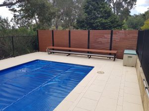 This outdoor swimming pool required a 12.5 x 6m 525B solar commercial cover with edge binding installed onto an existing Daisy commercial roller.